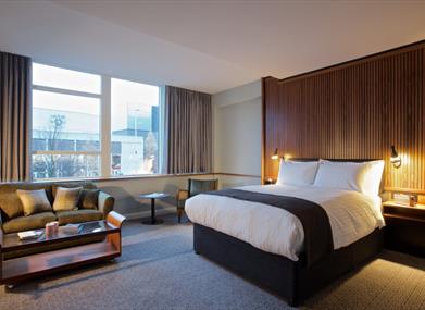 The scene is more laid-back since its conversion into a chic new hotel putting Coventry in the news with headline-grabbing features that bring style and comfort to the city. Forme & Chase – our restaurant, bar and lounge is bringing back some authentic 1950s glamour. Then there are the 88 uniquely-styled bedrooms, including the Lord Iliffe Suite, which reimagines the original owner’s private apartment. Generators – our seasonal rooftop bar with a printworks-industrial theme – is a very cool place to watch the sun setting over Belgrade Plaza.